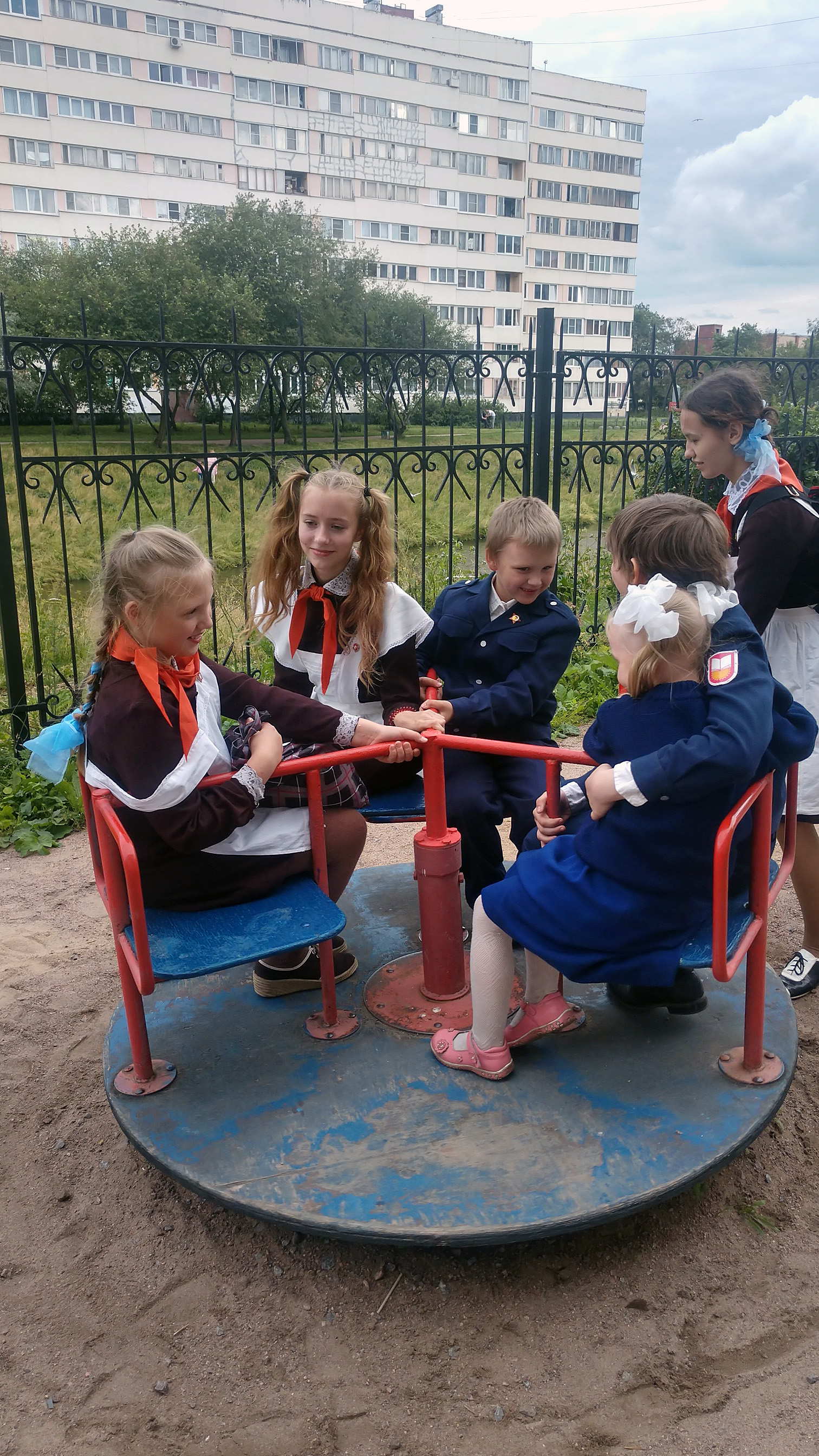 Где-то в середине августа моя будущая классная руководительница Марья Павловна позвонила родителям и попросила, чтобы я выучил какой-то стишок, буквально, четверостишие. Любое. Память у меня всегда была хорошая, я знал и стихи, и песни, но, вероятно, родителям не хотелось, чтобы я читал: "Мой друг уехал в Магадан,- снимите шляпу..." (я вообще всю песню наизусть знал). А у меня тем летом была книга "Чудаки". Сборник весёлых стихов. В ней, например, был стишок "Симонов Сазон воробьев кормил. Бросил им батон - десять штук убил". Вот, я выучил: "Велосипед меня повез, повез куда-то под откос. Но там остался без колес - и дальше я его понес". Я думал, что этот стих я буду читать на линейке. Черта с два! За неделю до 1го сентября меня и еще нескольких будущих одноклассников собрали в школе (с родителями) и дали написанные стишки. Тема была общая: как мы, первоклассники, хотим освоить все науки. По каждой науке-предмету - свой стишок (если это так можно назвать, уж не знаю, кто эти стишки придумал). Мне досталось такое: "Я хотел бы поскорей овладеть английским, чтобы в космосе беседу мне с Америкой вести!". Напомню, летом 1975г состоялся совместный полет по программе "Союз - Аполлон". Ну, вот это я и прочел на линейке. А те стихи (про велосипед) были нужны только для того, чтобы проверить дикцию и голос. Я был очень злой: я-то думал, что именно про велосипед я буду читать на линейке.