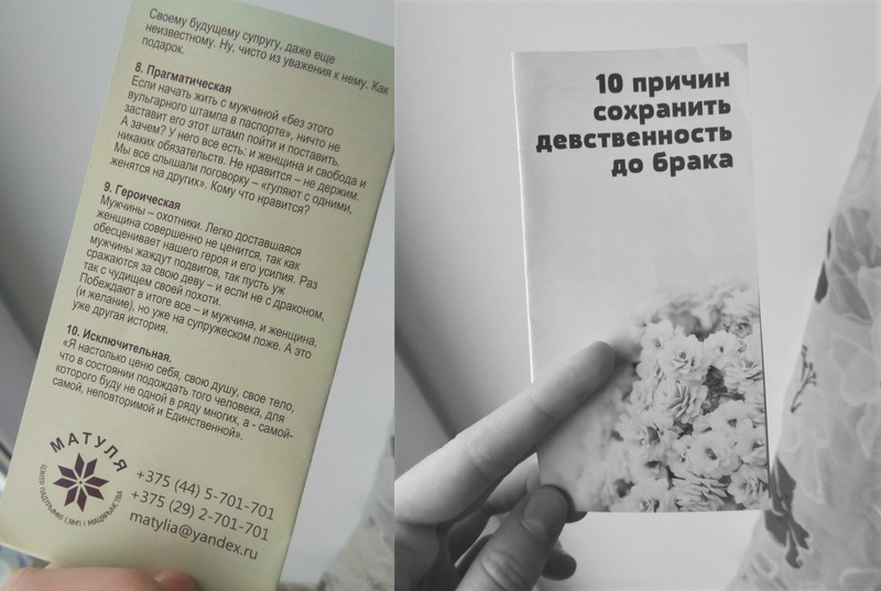 Прислали чудесную брошюрку с таким названием (см. заголовок), которую распространяли в некоторых школах Беларуси. Автор этого дремучего и мракобесного дурдома - некая Вероника Сердюк, председатель центра поддержки семьи и материнства «Матуля».