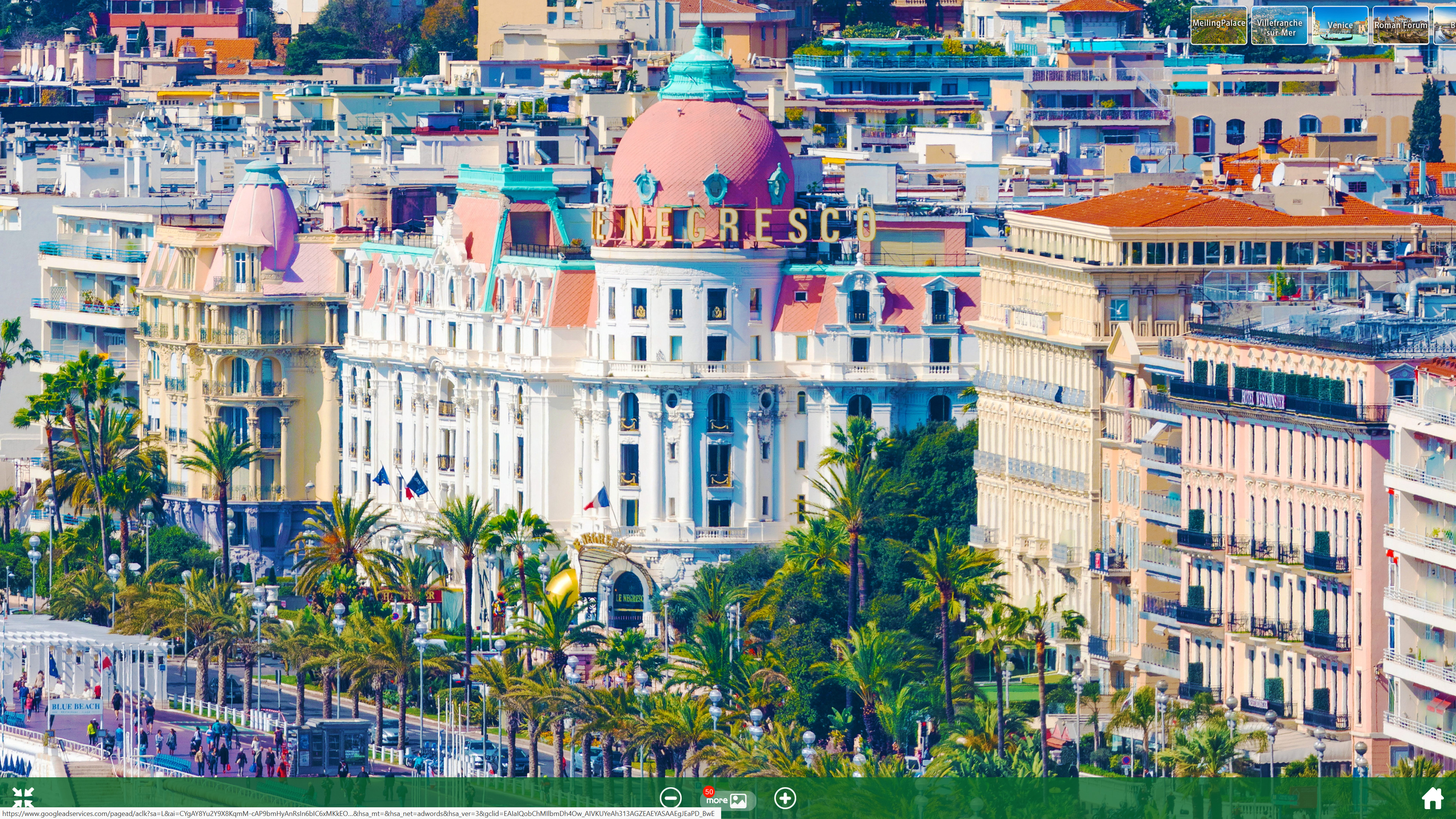 И от этой точки начинаем колесом мыши приближать противоположный конец города - например, набережную с променадом, где стоит отель Negresco.