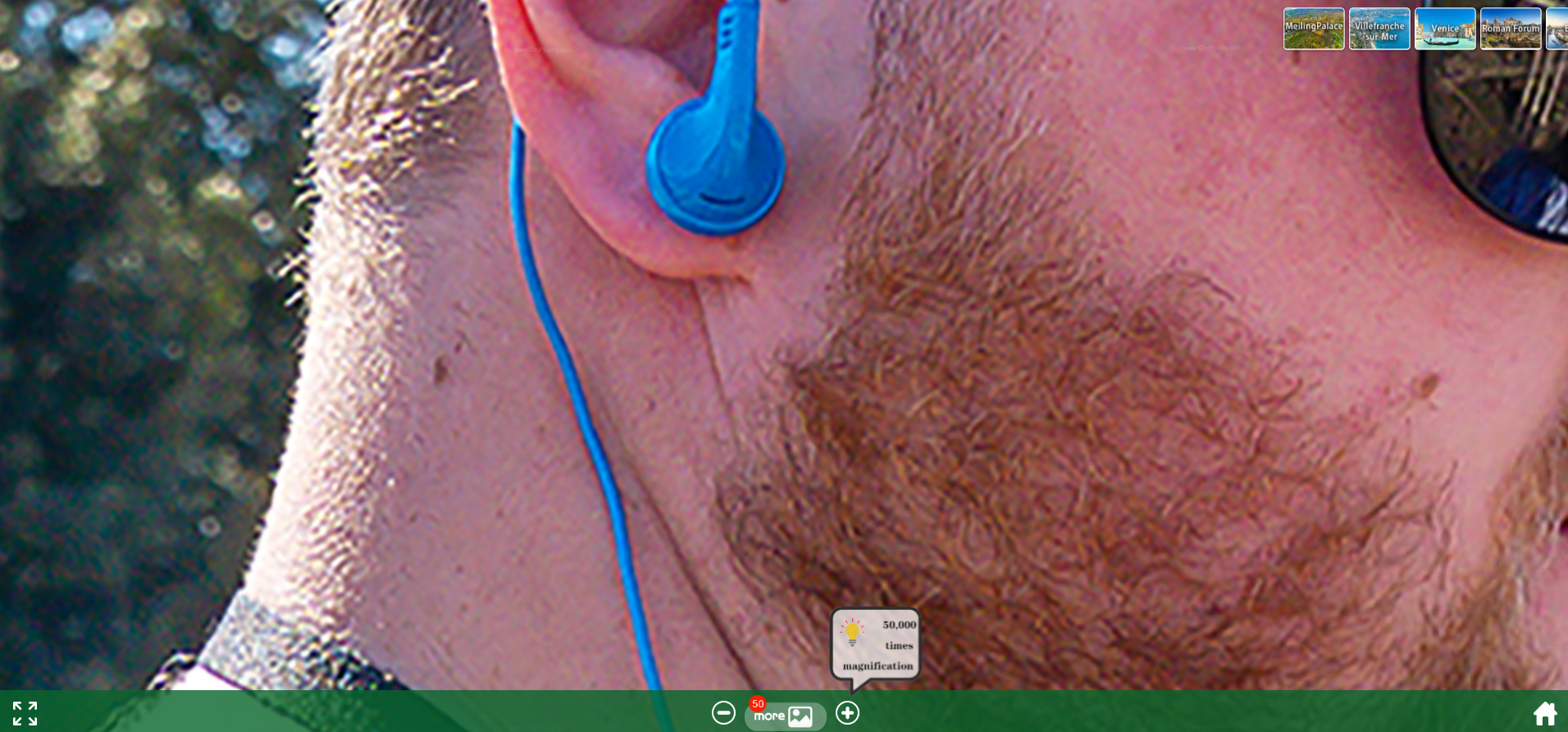 Интересный проект - "100 billion pixels to see the world entrance". Сферические панорамы различных городов и красивых мест, однако эти сферические панорамы составлены из огромного количества фотографий и способны давать увеличение в 50 тысяч раз, как там написано.