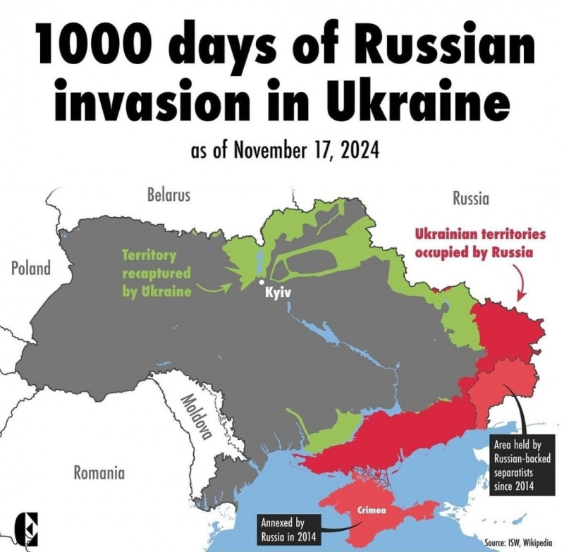 "1000 дней полномасштабного вторжения" - да, но "1000 дней войны" - это чушь.