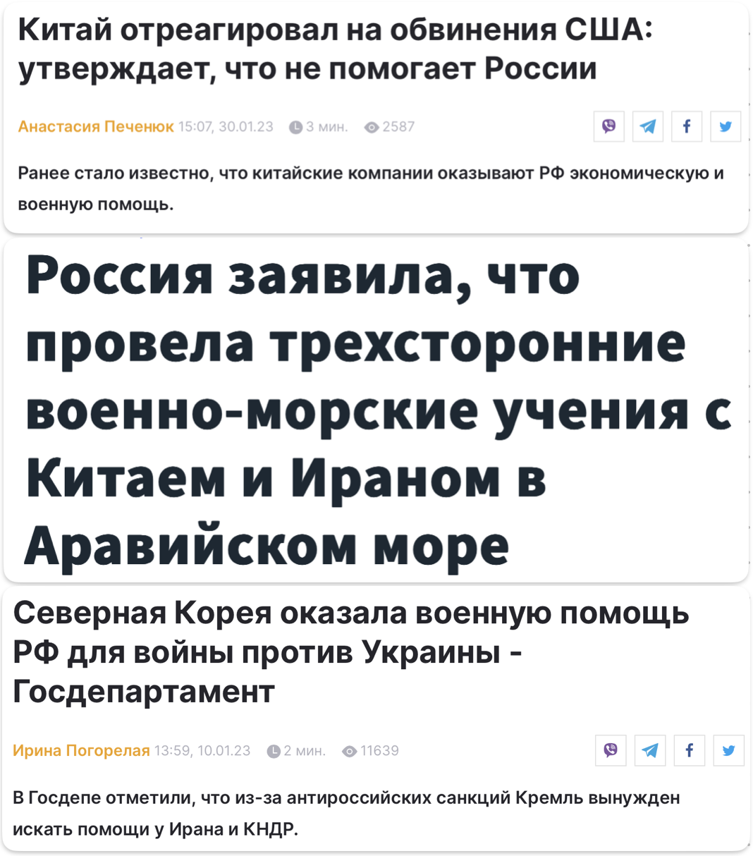 "Нет у нас союзников, плак-плак" для внутренней аудитории, и "да нет у нас никаких союзников!!1!" для цивилизованного мира, чтобы Китай, Иран и Северная Корея по-тихому продолжали помогать с оборудованием, деньгами и боеприпасами, и при этом не слишком попадали под санкции.
