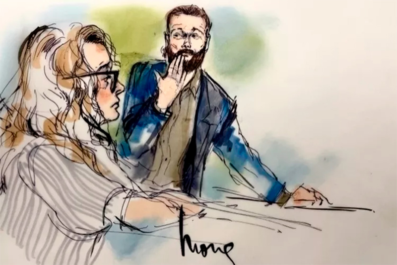 Дэнни Мастерсон после вынесения приговора отправляет воздушный поцелуй своей жене на суде. Рисунок: Мона Шафер Эдвардс / BACKGRID