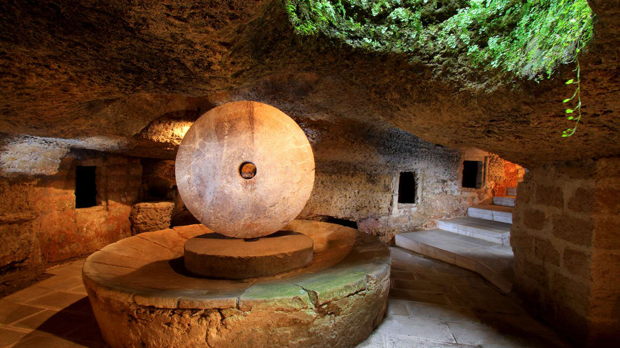 Под главными площадями и роскошными палаццо в стиле барокко находится сеть из 23 тайных камер и оливковых мельниц, в которых фермеры, известные как траппеттари, проводили месяцы в сезон сбора урожая, давя оливки в каменных мельницах, толкаемых ослами.