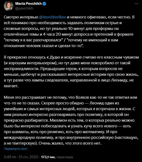 P.S. Помнится, я как-то послушал получасовой ролик Волкова, в котором он обещал ответить на обвинения Каца. В получасовом ролике Волков в итоге сказал, что он подробно ответит на обвинения Каца в следующем ролике. Серьезно. Поэтому мне непонятно, как Дудь уложился в 4,5 часа, там действительно могло быть и 24 часа с манерой Волкова растекаться мыслями во все стороны.