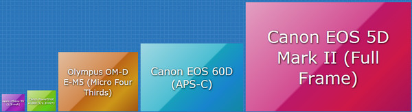 Обычно в телефонах используют сенсоры формата 1/3", то есть почти вдвое меньшего размера.