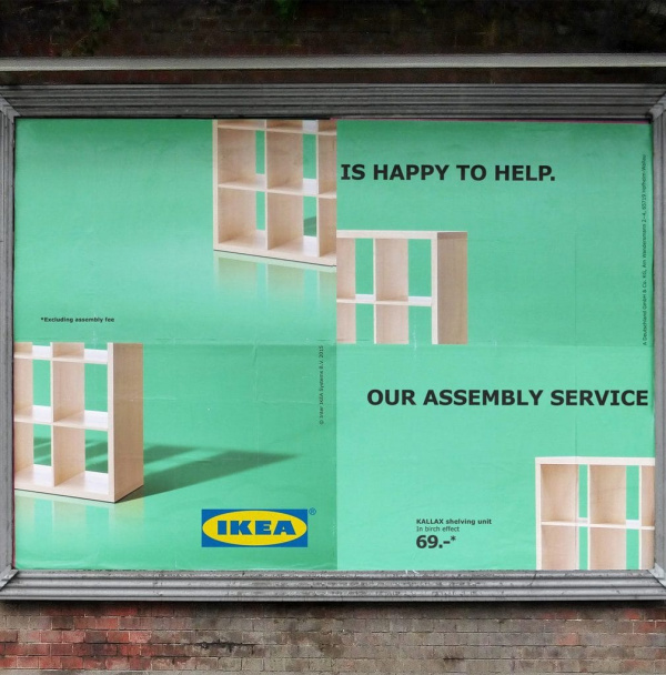 Рекламируется их сборка мебели, а на плакате показано, как вы соберёте без ИКЕИ?