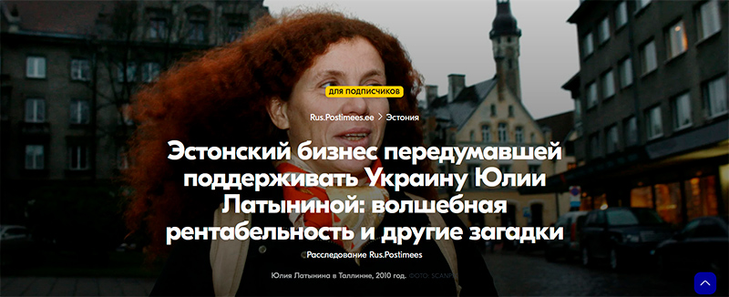В эстонском издании Postimees опубликовали материал (там paywall) о Юлии Латыниной и о деятельности ее фирм в Эстонии. Я об этой статье прочитал в ТГ Александра Плющева, ну и сначала приведу его впечатления о данной статье - он заплатил за доступ и прочитал ее.