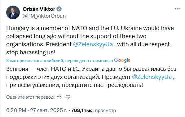 Урод Орбан выдал в Твиттере.