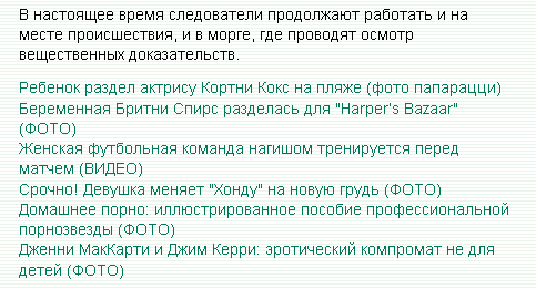 Стал играть в игру, догадаюсь ли, что найду по баннеру. Что характерно, догадался практически точно. Заметка была о том, что кто-то распустил слухи о смерти Матвиенко в результате передоза. Матвиенко гневно опроверг эти слухи, заявив, что передоза не было: вставились, как полагается, без балды. Короче говоря, адресованная другу ходит пяточка по кругу, потому чта-а-а-а, круглая земля, базу-базу!