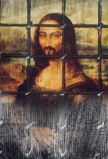 Ну и на десерт - просто шедевр китча: картина под названием "Автопортрет Джоконда в России". Он так себя видит: в виде Джоконды в России. За решеткой. Орел молодой.