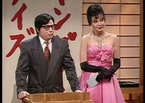 Следующий номер программы Saturday Night Live - японское шоу Майка Майерса. Его могут посмотреть даже те, кто плохо понимает по-английски - практически все шоу все равно говорят по японски. (Правда, Майк, изображающий ведущего, все-таки сумел аккуратно ввернуть коронную фразу о yellow monkey.)