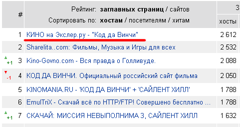 Обычно выше второго места раздел не поднимается - сверху всегда стоит какая-нибудь файлокачалка. Непонятно, правда, что они вообще делают в кинорейтинге, но "Рамблер" не делает различий между киносайтами и файлокачалками. Впрочем, файлокачалки из рейтинга нередко выставляют за нарушения: накручивают, накликивают и так далее. Пираты-с, что с них возьмешь...