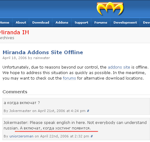 Потом этого недоумка, как мне рассказали, угораздило еще и попросить высказать мнение окружающих в значительно более густонаселенной ЕЖЕ-рассылке, где ему уже навтыкали массово и по полной программе, отчего он потом долго не мог отойти и почему-то вовсю обижался, болезный.