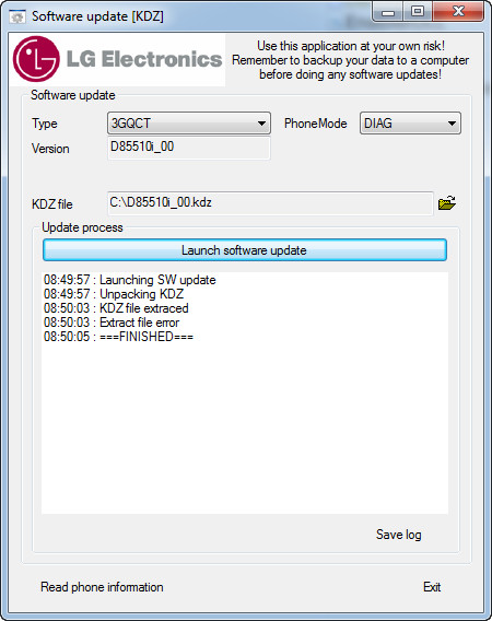 Перепрошивал через KDZ. Скачал три версии европейских стоковых прошивок. На всех них KDZ при распаковке выдавал вот такую ошибку.