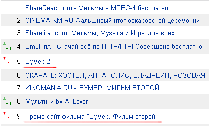 Хохма в том, что сайты "Бумер 2" и промо-сайт "Бумер. Фильм второй" - совершенно одинаковые, размещены непосредственно на Rambler, но под разными адресами и с разными счетчиками. Пытаются больше хостов с рейтинга собрать, что ли? Ну тогда сделали бы десять одинаковых сайтов, а не два...