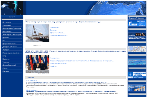Совершенно случайно наткнулся на сайт "Газпрома". Я так думаю, что на его разработку они потратили аж долларов 100. Правда, в заголовке даже забыли написать название фирмы, но со стилем оформления сайта это вполне коррелирует. Офигеть не встать! Лет семь назад странички мелких контор - и то лучше делали. Позорище...