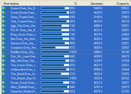Да, конечно, на семимегабитке - просто праздник какой-то! CD-альбом в MP3 со 192 битрейтом засасывается за пару минут. Выглядит это так: