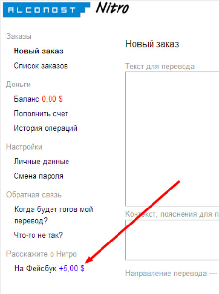 Попробовать работу Alconost можно и бесплатно. Для этого нужно всего лишь порекомендовать Nitro (опубликовать в своей ленте ссылку) на Фейсбукe. Делается это вот так (на счет добавится $5).