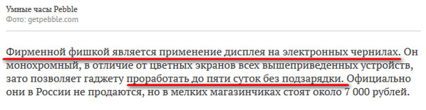 На "Ленте" статья "В ожидании iWatch". Там сравнивают различные "умные" часы. В разделе, посвященном часам Pebble (мой обзор), пара грубых ошибок.