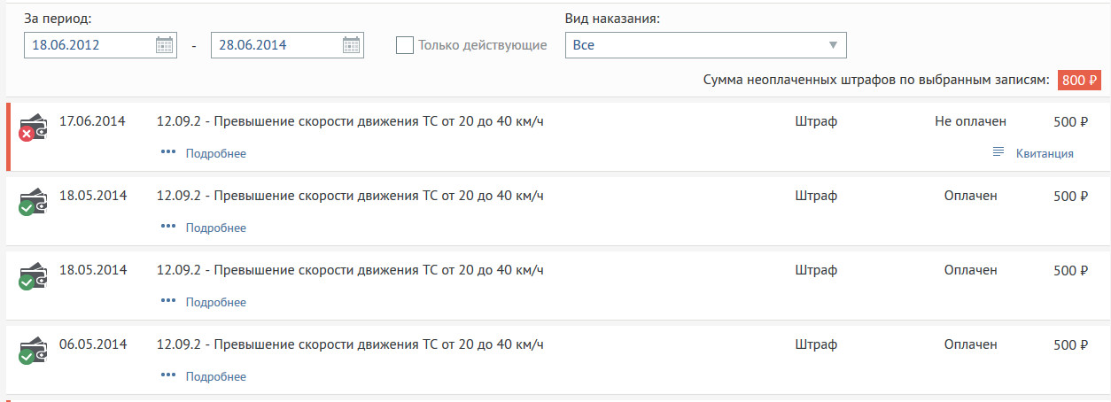 Неоплаченные штрафы там пока оплатить нельзя, однако можно распечатать квитанцию на оплату, что тоже полезно.