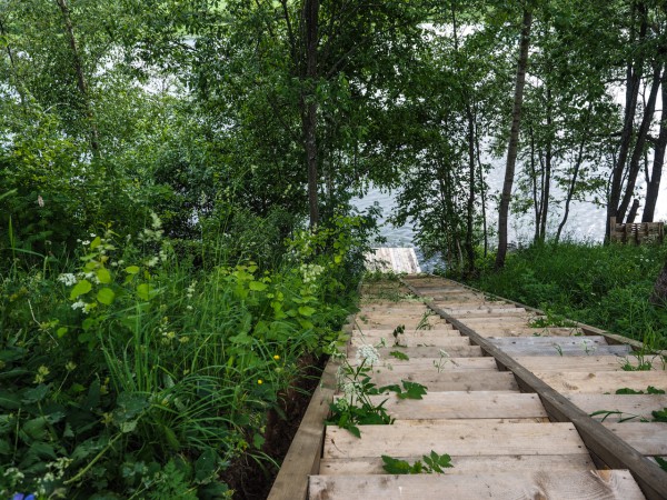 После обеда решили покататься на лодке с мотором. Лодка спускается на воду вот по такой лесенке.