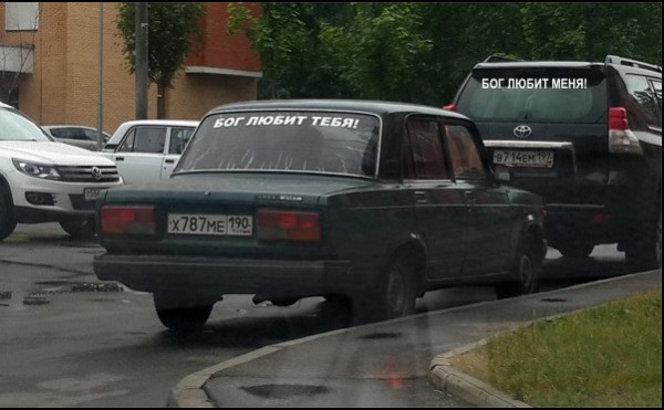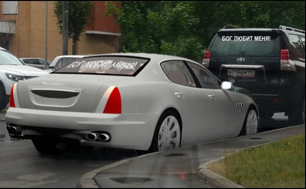 (Представил себе Maserati с надписью: "БОГ ЛЮБИТ МЕНЯ".)