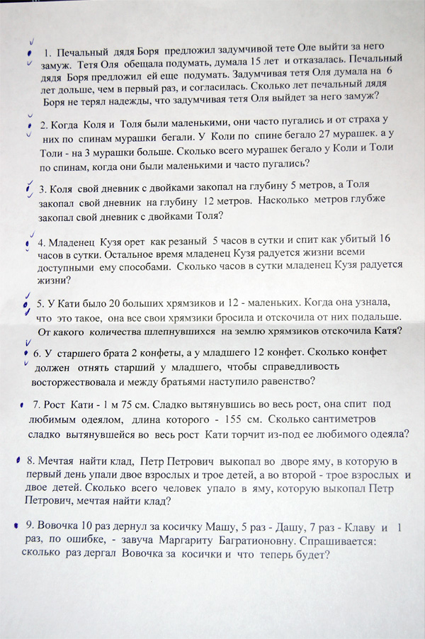 У Андрея сын из школы принес листочек с задачами на математику-логику.