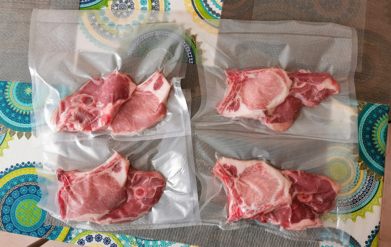 И вдруг сегодня, когда я собрался закатать только что купленное мясо в пластик, чтобы не думать, сколько оно лежит в холодильнике и не испортится ли, в голову пришло Соломоново решение! Я же ем по два куска - свинины или баранины. Так что мешает мне закатать по пакетам кусок свинины и кусок баранины?!! И все, проблема решена, больше никаких мук выбора и никаких сожалений!