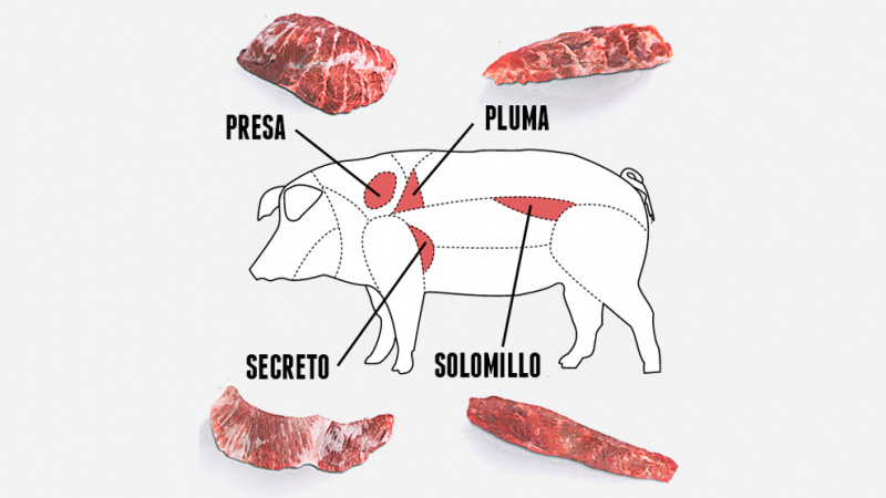 Я обычно на обед кроме овощей и салатов съедаю пару кусков мяса. Как правило, это или свинина, или баранина. Свинину я покупаю в виде антрекотов на кости, причем из специальной иберийской породы, откормленной особым образом, чтобы мясо было с прожилками жира - тогда получается отлично, потому что если покупать постные антрекоты, то они выходят очень сухие. Также еще нередко покупаю secreto de cerdo: черт его знает, как это будет по-русски - это мышца, расположенная за палетой, передней ногой. Она очень нежная, с прожилками жира, получается очень вкусно.