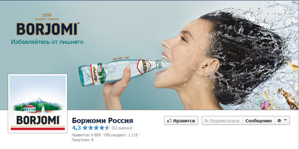 Сегодняшний приз зрительских симпатий достается обложке странички в Facebook компании Borjomi.