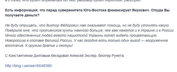 По украинским сайтам бродит какое-то явно самопальное "интервью" с каким-то "народным губернатором Харьковщины", который давно из Харькова сделал ноги и скрывается в Москве. Меня бы это все очень мало волновало, если бы не подпись в конце "интервью".