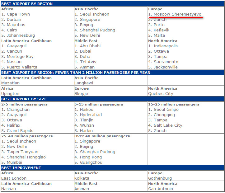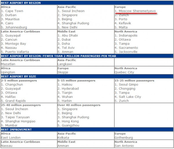 На сайте Airports Council International (ACI) аэропорт "Шереметьево" назван лучшим европейским аэропортом.