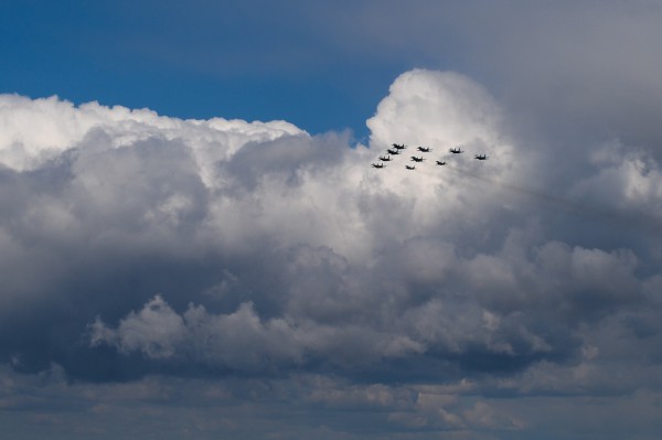 Ребенок сегодня оригинально смотрел Парад Победы. Сначала он подбегал к окну и смотрел на пролетающие звенья самолетов, а потом бежал к телевизору, где через непродолжительное время эти же самолеты пролетали над Красной площадью.