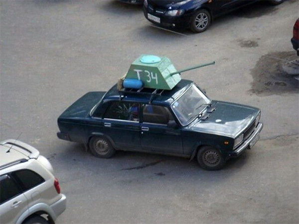 P.S. Ездил сегодня по Москве. Полно машин с российскими флагами и надписью "Спасибо деду за победу" и "На Берлин". Но приз зрительских симпатий получает машина BMW с надписью "На Берлин" (на BMW это особенно пикатнтно смотрится), у которой на крыше была сделана башня танка с пушкой - из зеленого поролона. Туда же были воткнуты два российских флага. Вот это я понимаю - человек с выдумкой. Так жаль, что не успел его заснять - он очень быстро мимо проехал. А видеорегистратор я, как на грех, не взял.