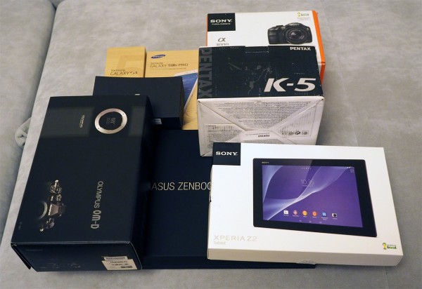 Смартфоны LG Flex и Samsung Galaxy S5, планшеты Sony Xperia Z2 и Samsung Galaxy Tab Pro 8,4 LTE, фотоаппараты Sony Alpha A3000 и Pentax K-5. Также приехал очень меня интересующий ультрабук ASUS Zenbook UX301LA в топовой комплектации.