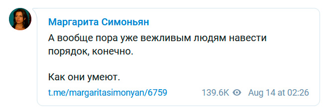 Тон самого Упыря существенно изменился. Он вроде бы перестал нести пургу про "руководят из-за рубежа", "на протесты выходят люди с криминальным прошлым, безработные и укуренная молодежь" и теперь даже вякает что-то вроде того, что, мол, люди имеют право на мирный протест (пруф сейчас не найду, слишком много источников приходится мониторить).