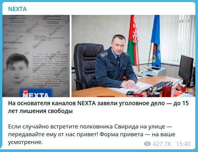 На создателя телеграм-канала NEXTA Live, который является самым подробным источником информации о том, что происходит, ожидаемо завели уголовное дело.