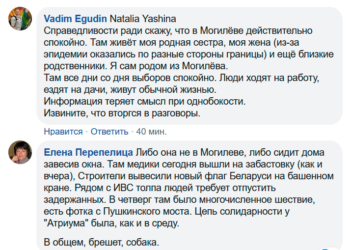 Upd4: К комментариям из серии "А у меня родственники из Беларуси говорят, что все спокойно, все любят Бацьку". Это открытые комментарии к открытой записи в FB.