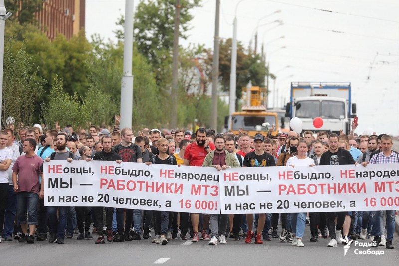 Что очень важно, работники крупных предприятий услышали призывы к бессрочной общенациональной забастовке и сегодня уже бастовали такие крупнейшие предприятия, как Белаз, МАЗ, МТЗ и Химволокно. Вот фото из МТЗ.