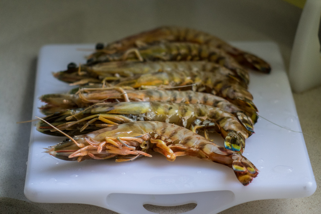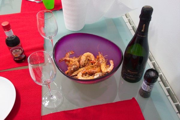 Купил тут для скромного воскресного ужина австралийских креветок на пробу - был впечатлен попугайской расцветкой их хвостов, да и размерчик - подходящий. (В Испании креветки выбирать - очень сложно: тут только местных - несколько десятков видов, а есть еще несколько десятков свежезамороженных аргентинских, австралийских и так далее.)