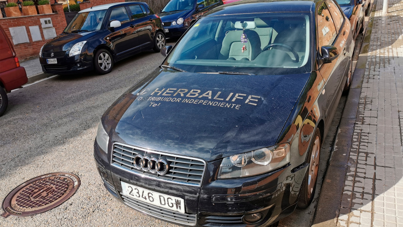 Иду сегодня выкинуть мусор, смотрю, очередной чужак стоит (местные машины я хорошо знаю). Причем не просто чужак, а независимый поставщик Гербалайфа (а они бывают и зависимые - алкоголь, наркотики). И кто-то из поклонников этого развода родом из девяностых ему хорошо так проковырял гвоздем эту надпись на крышке капота.