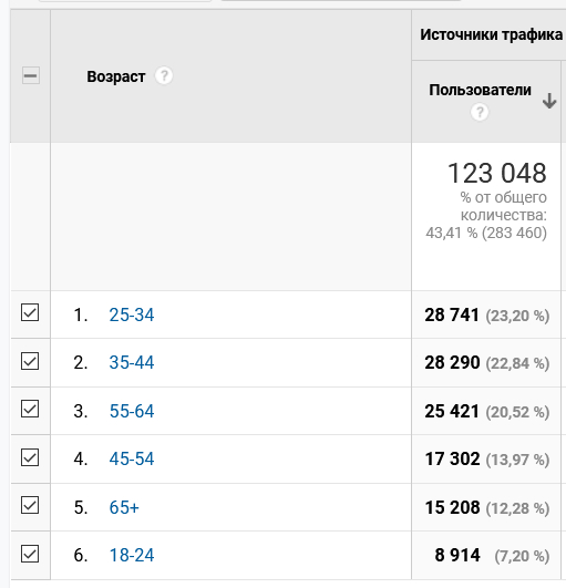 Ну и вот что Гугл.Аналитика выдает по поводу моего сайта (последний месяц). Я не знаю, как они определяют возраст, но на одних старперов здесь не сильно похоже ?