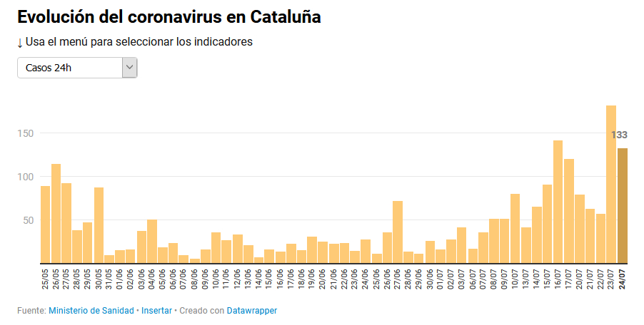 Глава Каталонии Ким Торра бьет тревогу и обещает, что он еще понаблюдает несколько дней за тем, что происходит, но если в Каталонии ежедневно будет фиксироваться такое же дикое количество случаев, то это означает только одно: народ здесь несознательный, видать, маски не всегда носит, ну и пора всех снова на хер запереть по квартирам в 35-градусную жару - для их же блага, разумеется, чтобы не дай бог не заболели.