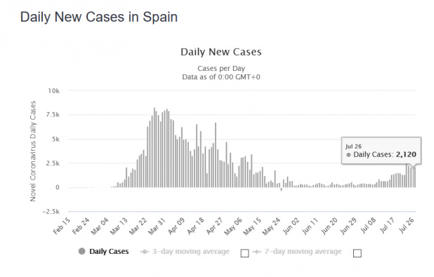 Повсеместное требование носить всегда и везде маски, причем даже во время прогулок на улице, показало свою высочайшую эффективность: в Испании идет резкий рост заболеваемости коронавирусом (от 150-300 случаев в день до 2 тысяч и больше), власти говорят о том, что сейчас ситуация - как в феврале.