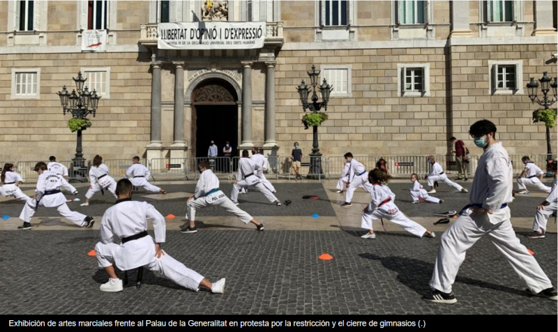 Тем временем в Жироне два легендарных деятеля боевых искусств, владельцы известнейших спортивных залов Шави Мойу и Жорди Калвета с пятницы проводят голодовку перед дверями администрации Жироны, пытаясь привлечь внимание к тому ужасающему положению, в которое они поставлены благодаря идиотским распоряжениям правительства Каталонии о работе спортивных залов - "Los gimnasios salen a la calle contra el cierre de actividad".