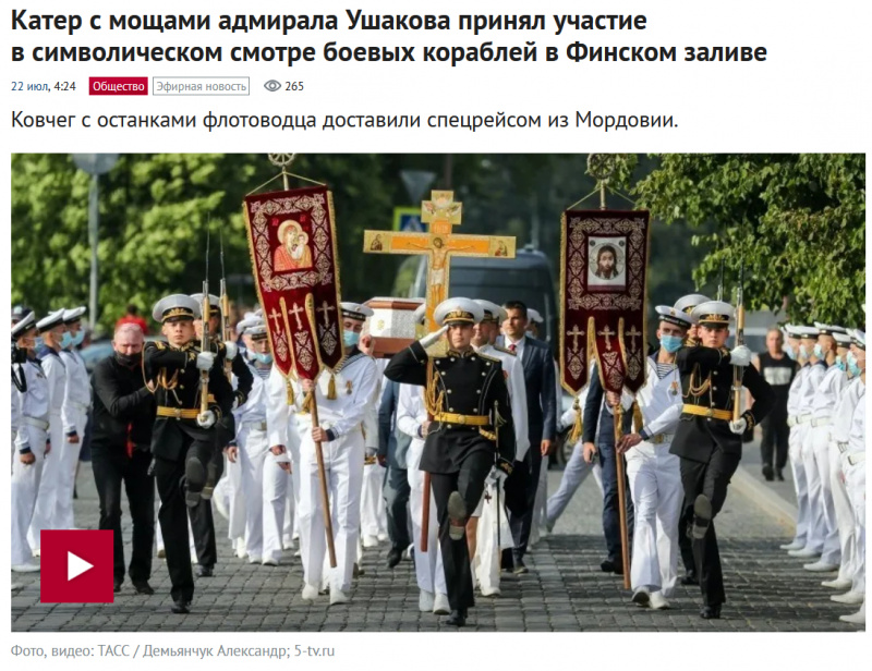 Мне когда эта новость попалась в ленте FB, я сначала подумал, что это, как обычно, кто-то купился на очередную фейковую новость с сайта "Панорамы". Но оказалось, что нет, не фейковая. Действительно кости и череп адмирала Ушакова покатались вокруг боевых кораблей в Финском заливе. И, как рассказали в видеосюжете, таким образом корабли получили благословение прославленного адмирала. Ну, вы же понимаете: если кости с черепом адмирала покатать вокруг кораблей, то они благословляются. И корабли благословляются, и мощи тоже самоблагословляются.