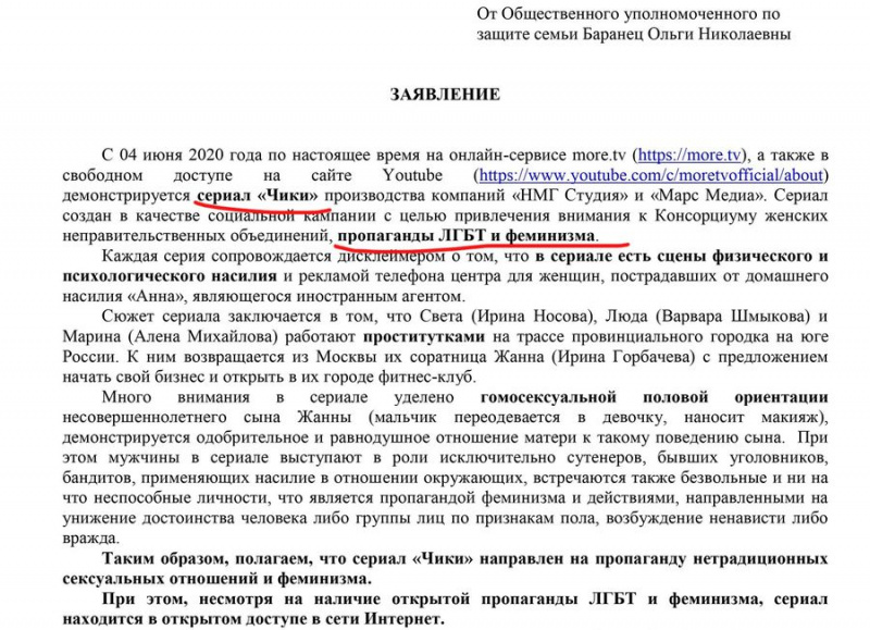 А проститутки - это пропаганда ЛГБТ? А то что несовершеннолетний сын одевается девочкой - это точно пропаганда ЛГБТ? Точно? Ирина Горбачева, кстати, играет - она хорошая актриса. Кто смотрел - имеет смысл? Обычно, когда такие овцы-баранцы возбуждаются - это уже хороший признак. Смотреть, нет?