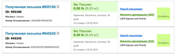 Можно делать сразу несколько покупок в различных магазинах, тогда в личный кабинет прилетает несколько отдельных посылок. По-отдельности отправлять их не требуется: все коробки автоматически и бесплатно объединяются в одну и отправляются на домашний (российский адрес) одной посылкой. Кругом экономия!