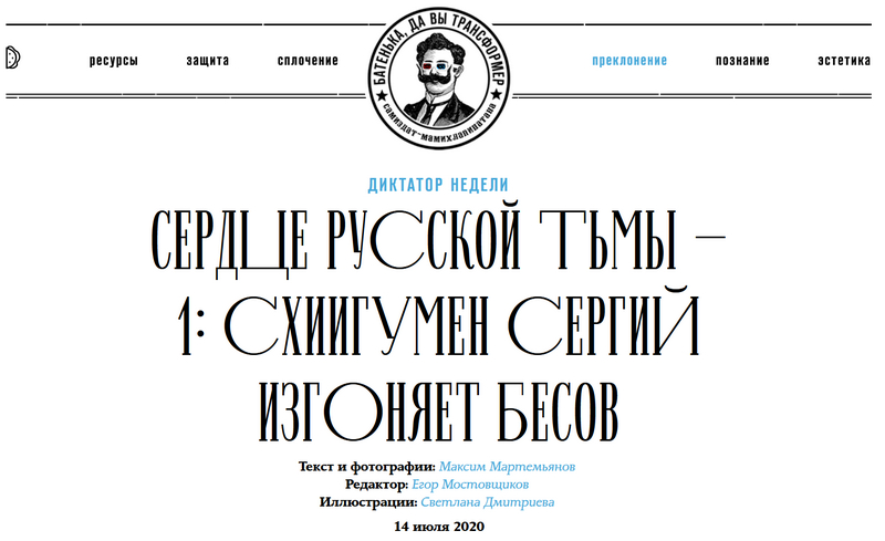 Первая статья - "Сердце русской тьмы: Схиигумен Сергий изгоняет бесов".